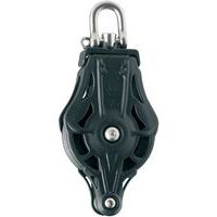 - Zeer bestendige katrol (behuizing en blokschijf) van zwart kunststof met rvs haak 316 l, gesmeed