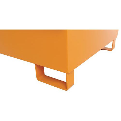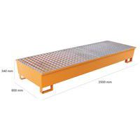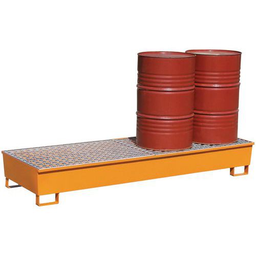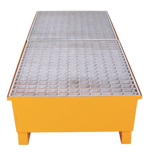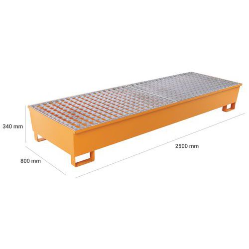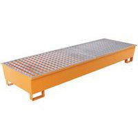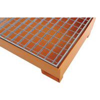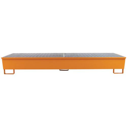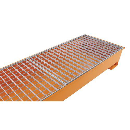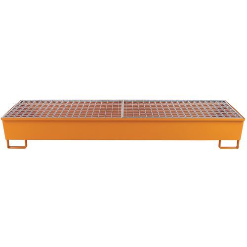 Bestand tegen belasting en opgeslagen producten. Opvangbak met rooster in gegalvaniseerd staal. Extractie van de vloeistof gaat via de pomp. U-poten met een hoogte van 100 mm maken het doorvoeren van vorken eenvoudig en garanderen een optimale stabiliteit.