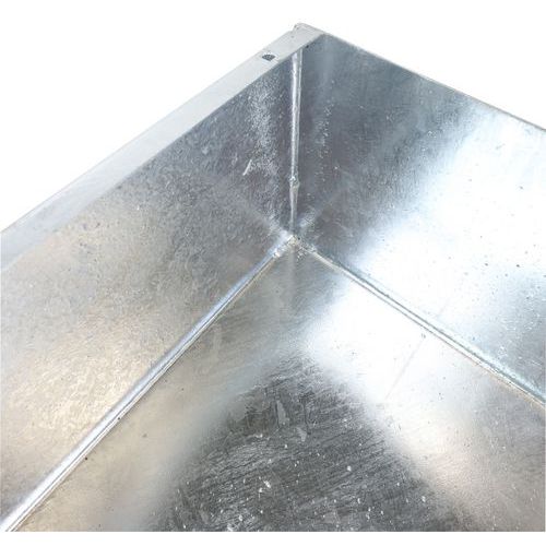 Bestand tegen belasting en opgeslagen producten. Opvangbak met rooster in gegalvaniseerd staal. Extractie van de vloeistof gaat via de pomp. U-poten met een hoogte van 100 mm maken het doorvoeren van vorken eenvoudig en garanderen een optimale stabiliteit.