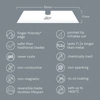 Keramisch reservemes met puntige punt, Mes breedte: 11.95 mm, Lengte mes: 65.13 mm, Mes dikte: 1.3 mm