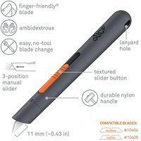 Met rubber beklede schuifknop om de hoeveelheid blootliggend mes te regelen en letsel te verminderen.