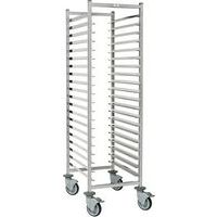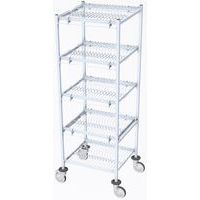 - Aan de wand te bevestigen voor ruimtebesparing. Opgevouwen is de diepte slechts 50 mm. 10 niveaus met tussenruimten van 90 mm. Maximaal toelaatbare belasting per niveau 10 kg. Te gebruiken voor platen of roosters 600 x 400 en GN1/1. Zeer robuuste constructie met dragers die in 2 standen (open en gesloten) vergrendelbaar zijn. Rvs.