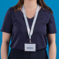 Keycord Avery, zijdeglans, breed en plat, voelt zacht aan en is comfortabel te dragen. Standaard draaimusketon. Veiligheidsclip die loslaat bij een grote trekkracht, om elk risico op verstikking te voorkomen.