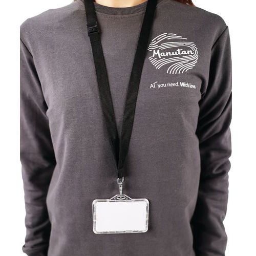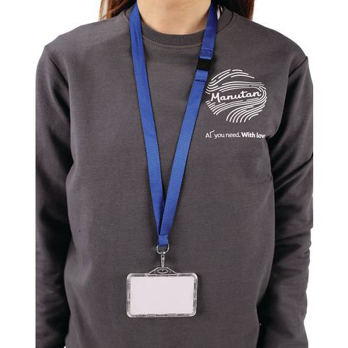 Dit nekkoord is een essentieel accessoire voor je milieubewuste aanpak. Nikkelvrije metalen clip om het risico op allergieën te verminderen. De dikte van het veilige koord van gerecycled pet van 15 mm en de nikkelvrije sluiting is 1,6 mm.