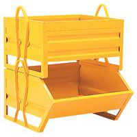 De kiepcontainer is stapelbaar of eenvoudig vast te zetten met een takel. U verplaatst de kiepbak met een pallethefwagen of heftruck.