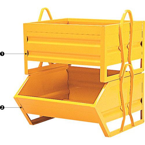 De kiepcontainer is stapelbaar of eenvoudig vast te zetten met een takel. U verplaatst de kiepbak met een pallethefwagen of heftruck.