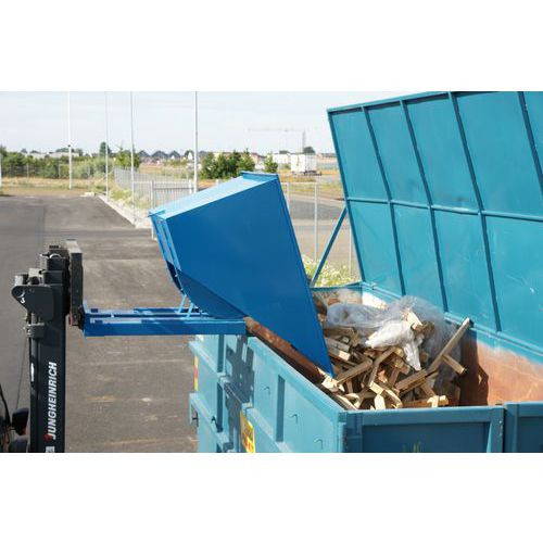 Kiepcontainer die is aangepast aan de meeste vrachtwagens, heftrucks en stapelaars op de markt, perfect voor bronsortering en afval- en materiaalbehandeling in bijvoorbeeld industrie/werkplaatsen.