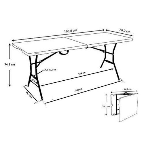 Zwarte rechthoekige klaptafel - 183 x 76 cm - Lifetime