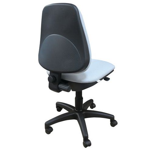 Ideaal zitcomfort dankzij permanent contact. Rugleuning in hoogte en in diepte verstelbaar. Pneumatische cilinder voor hoogteverstelling van de zitting. Klassieke bureaustoel in 6 kleuren. Bekleding van 100% polypropyleen met een slijtweerstand van 40.000 Martindale-toeren. Onderstel van zwart nylon. Conform de Europese normen NEN-EN 1021-1 en 1021-2. Ideaal voor thuiswerken