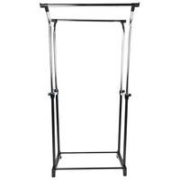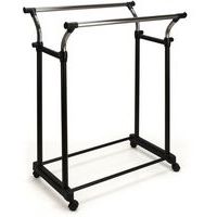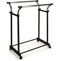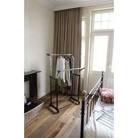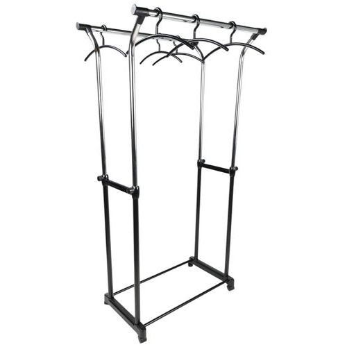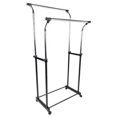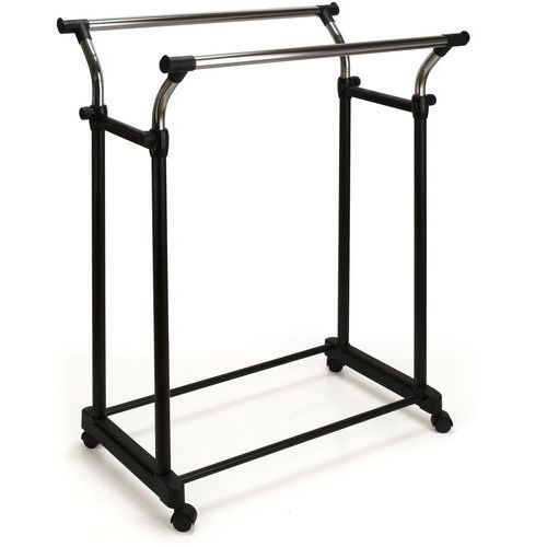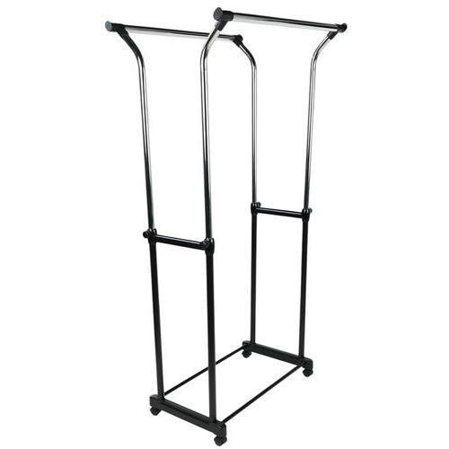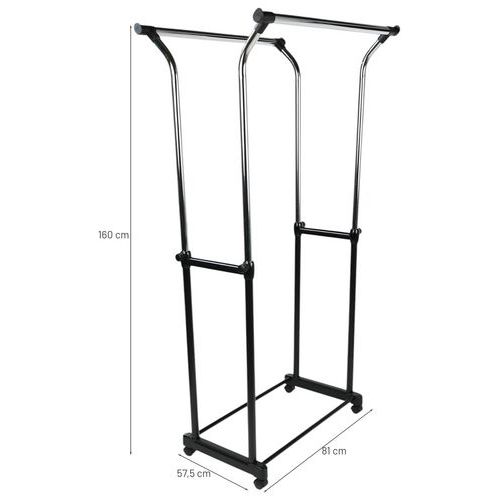 - Zeer stevig mobiel kledingrek op zwenkwielen met 2 hanggedeeltes. De hoogte is verstelbaar van 105 tot 160 cm. Maximale belasting: 25 kg per stang.
