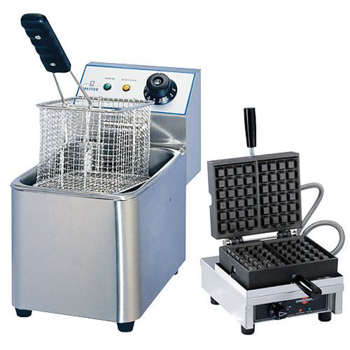 - Friteuse elektrisch met 2 diepgetrokken kuipen.