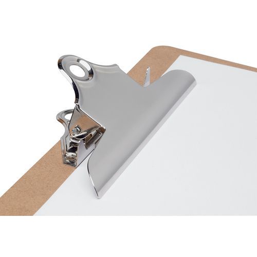 Klembord staand van hardboard met klem. Retroklem van stevig staal met stevige metalen veer. Natuurlijk effect dankzij het onbewerkte oppervlak. Praktisch: met bevestiging. Trendy design.