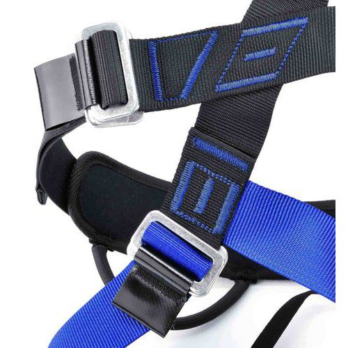 Volledig verstelbare klimgordel, rechterdij in blauw, linkerdij in rood voor visuele identificatie om de...