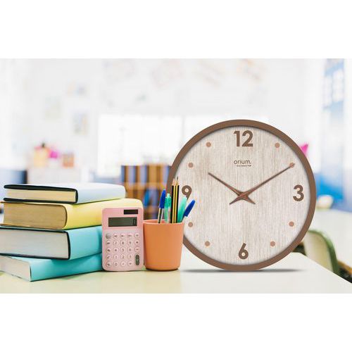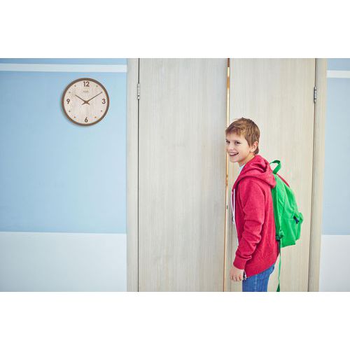 Klok Naturalis ecodesign cappuccino. Stille beweging om de rust en concentratie in uw werkruimtes te garanderen. Wijzers van natuurlijk hout. Elegant ontwerp, past harmonieus in elke ruimte. Geeft een eigentijdse uitstraling met respect voor het welzijn van uw omgeving.