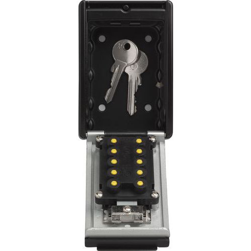 | Productnaam | Kluis met codeslot voor wandbevestiging, Materiaal: Aluminium, Totale hoogte: 120 mm, Totale breedte: 82 mm |