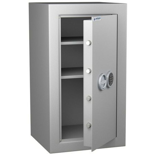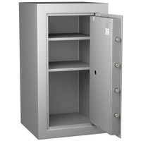 Kluis Vulcain-serie van 40 tot 205 liter. Anti-inbraakbeveiliging conform de Duitse norm VDMA niveau B. Vergrendelingssysteem met mangaanbepantsering tegen doorboring. In hoogte verstelbaar legbord. Bezorging op afspraak met bedrijfsklaar maken bij de klant en afvoer van verpakkingsmateriaal voor recycling. Begane grond met maximaal 2 treden of verdieping met lift. Maximaal 20 meter rijden. Neem voor alle speciale verzoeken met betrekking tot de levering contact op met onze klantenservice (moeilijk toegankelijke plaatsen, steile hellingen, zachte grond).