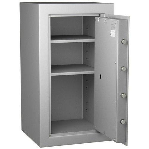 Kluis Vulcain-serie van 40 tot 205 liter. Anti-inbraakbeveiliging conform de Duitse norm VDMA niveau B. Vergrendelingssysteem met mangaanbepantsering tegen doorboring. In hoogte verstelbaar legbord. Bezorging op afspraak met bedrijfsklaar maken bij de klant en afvoer van verpakkingsmateriaal voor recycling. Begane grond met maximaal 2 treden of verdieping met lift. Maximaal 20 meter rijden. Neem voor alle speciale verzoeken met betrekking tot de levering contact op met onze klantenservice (moeilijk toegankelijke plaatsen, steile hellingen, zachte grond). VDS