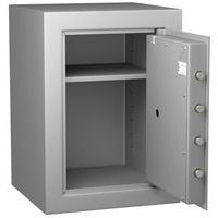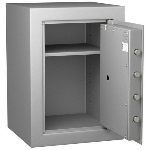 Kluis Vulcain-serie van 40 tot 205 liter. Anti-inbraakbeveiliging conform de Duitse norm VDMA niveau B. Vergrendelingssysteem met mangaanbepantsering tegen doorboring. In hoogte verstelbaar legbord. Verankeringsgat in de onderkant, ø14 mm. Bezorging op afspraak met bedrijfsklaar maken bij de klant en afvoer van verpakkingsmateriaal voor recycling. Begane grond met maximaal 2 treden of verdieping met lift. Maximaal 20 meter rijden. Neem voor alle speciale verzoeken met betrekking tot de levering contact op met onze klantenservice (moeilijk toegankelijke plaatsen, steile hellingen, zachte grond).