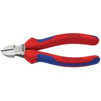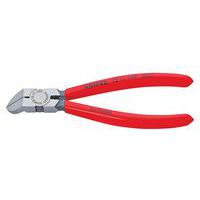 - Diagonale kniptang met gelakte en gepolijste afwerking, en handgreep met pvc-coating.