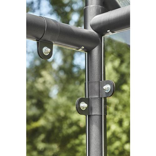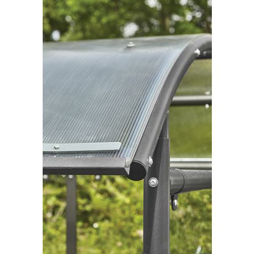 Overkapping met in hoogte regelbare voeten voor het waterpas zetten.