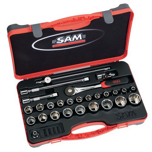 | Productnaam | Koffer 1/2 doppen met 27 12-kant gereedschappen in mm, Aantal stuks: 27, Type nr.: 75-S27PA |
