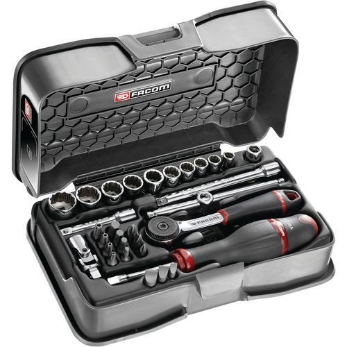 | Productnaam | Koffer 12-kant doppen 1/4'' dunwandig in inches en bits 31 stuks Facom, Type nr.: RB.161-4P12U |