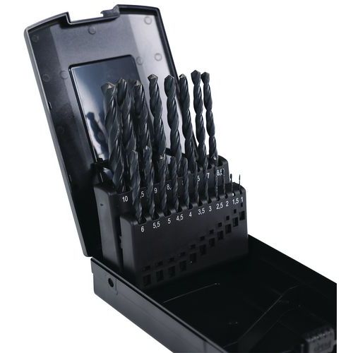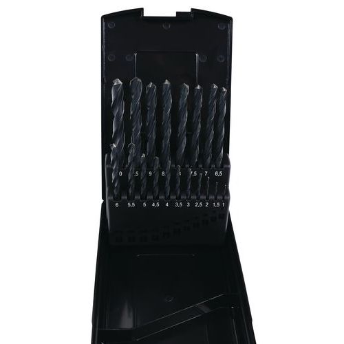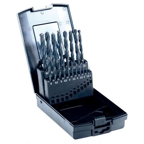 Koffer met 19 standaard boren met cilindrisch uiteinde, gelamineerd, van HSS-snelstaal Ø 1 tot 1 mm.