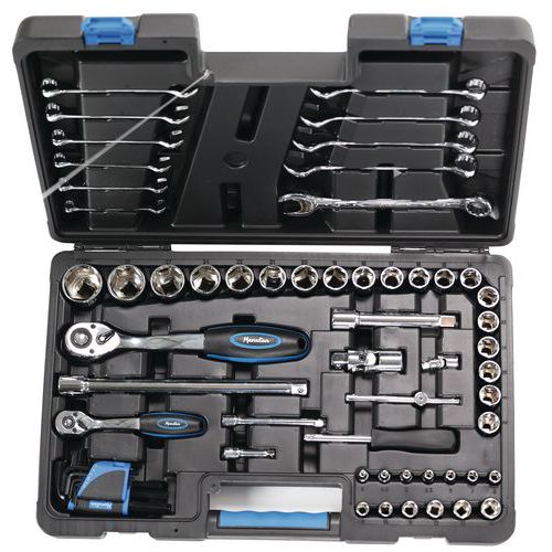 | Productnaam | Koffer met 62 gereedschappen, Aantal gereedschappen: 62, Lengte: 430 mm, Breedte: 270 mm, Hoogte: 85 mm |