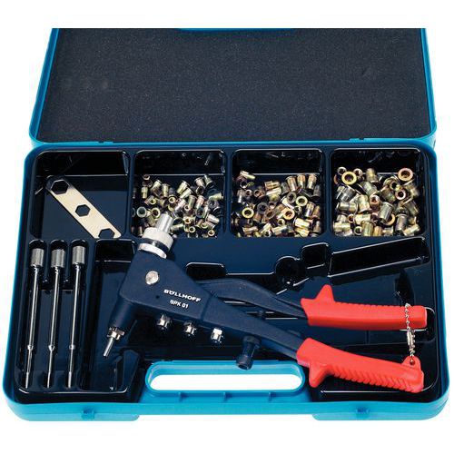 | Productnaam | Koffer met blindklinkmoeren en tang, Aantal stuks: 1, Model: Set, Type: Verzonken kop |