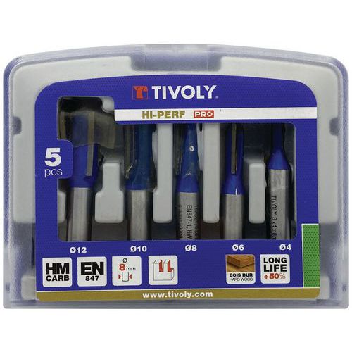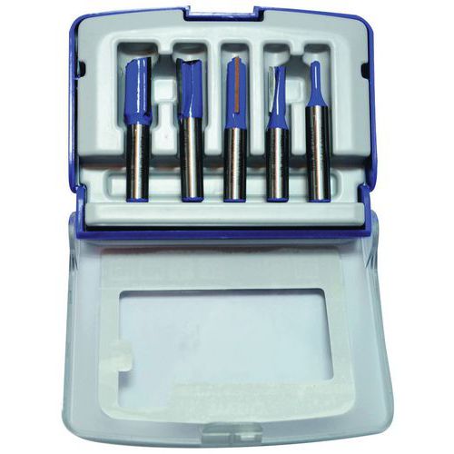 | Productnaam | Koffer met freesbladen, Aantal stuks: 5, Materiaal: Staal, Type steun: Kunststof |
