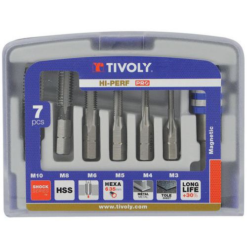 | Productnaam | Koffer met snijtappen HSS Shock-serie, Aantal stuks: 7, Materiaal: Staal, Type steun: Kunststof |