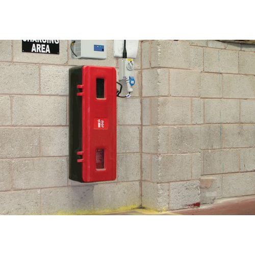 Koffer voor 1 brandblusser, Materiaal: Polyethyleen van hoge dichtheid, Kleur: Rood/zwart Koffer voor 1 brandblusser, Materiaal: Polyethyleen van hoge dichtheid, Kleur: Rood/zwart