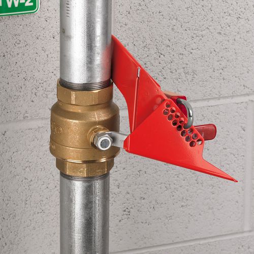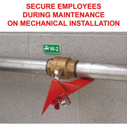 - Het apparaat past op de kwartslaghendels van handbediende kogelkranen om per ongeluk openen te voorkomen.
