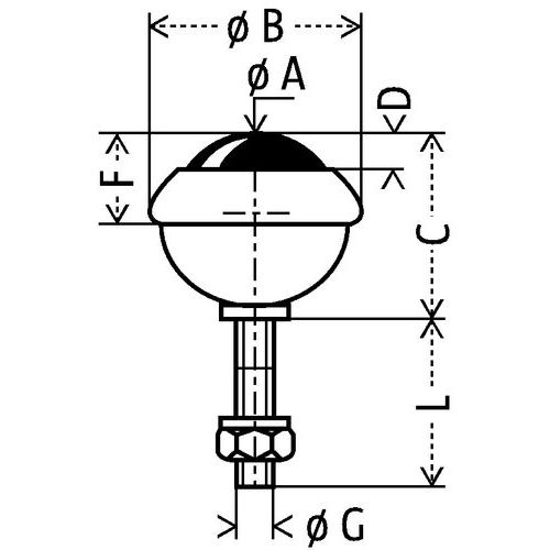 Kogelrol van roestvrij staal, Max. belasting: 55 kg, Type bevestiging: Draadeind, Kogel Ø: 25 mm