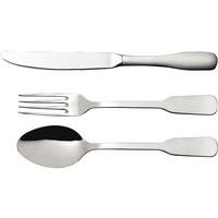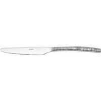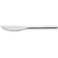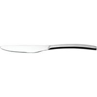 - Ovaal mesblad van roestvrij staal, aan de ene kant gekarteld om het brood open te snijden, aan de andere kant glad om de boter uit te spreiden.