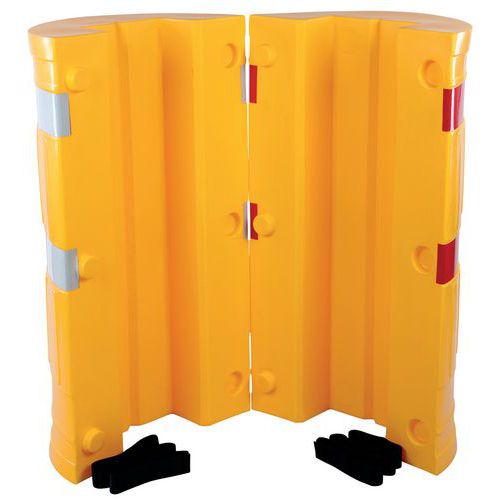 Bescherming voor pilaren of palen bestaande uit 2 halve schelpen, aanpasbaar aan alle structuren. Voorzien van 2 reflecterende strips en 2 klittenband voor de bevestiging. Goed zichtbare gele kleur om botsingen te voorkomen. Snelle montage en installatie zonder gereedschap of schroeven. Flexibel gebruik: buiten en binnen, tijdelijk of permanent.