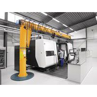 Kolomzwenkkraan met verhoogde giek met een totale zwenkhoek van 360°. Zeer gemakkelijke rotatie, dankzij een soepel lopende lager (bovenaan de kolom) en rollen (in het onderste gedeelte van de arm). Standaardhoogte onder balk: 3 m.