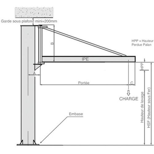 Kolomzwenkkraan met driehoekige giek type IPE 150 tot 500 kg - Huchez