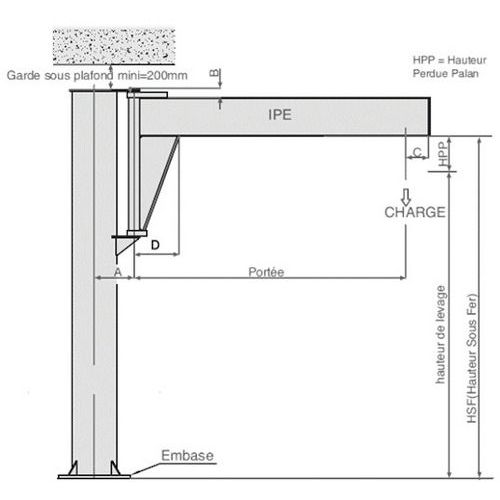 Zeer robuuste mechanisch gelaste constructie. Driehoekige giek van geprofileerd IPE-profielstaal. Soepele rotatie van de arm dankzij de zelfsmerende ringen. 270° draaibaar. Gele lak (RAL 1028). Verkrijgbaar met een bereik van 2, 3, 4 of 5 m. Neem voor overige mogelijkheden contact met ons op. Hoogte onder de kraanbalk standaard beperkt tot 5 m. Andere afmetingen op aanvraag leverbaar. Het gewicht is afhankelijk van model, neem contact met ons op. Optioneel: elektrische toevoerleiding, loopkat, elektrische of handbediende takel, speciale verf, verrijdbare verplaatsbare versie, afsluitbare schakelaar enz. Verankering op massief beton met haakankers (profiel en haakankers optioneel) of bevestiging op een betonnen tegel met een chemisch anker (optioneel), met of zonder zeefhuls (optioneel). Plaatsing van de zwenkkraan: zorg dat er een ruimte van 150 mm tussen de kraan en het plafond zit. Plaatsen en installatie: neem contact met ons op. Gemaakt in de EU Max. belasting (kg) : 2000 kg