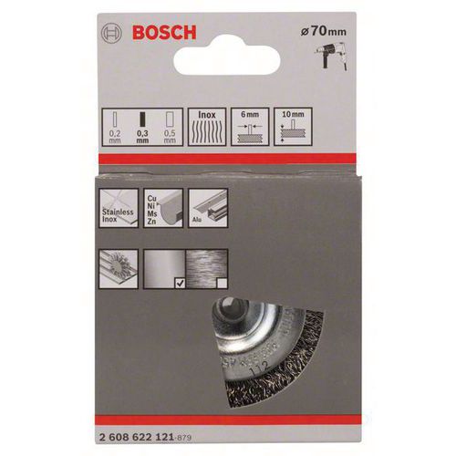 Komstaalborstel roestvrij, Draad materiaal: Staal, Ø: 70 mm, Draad Ø: 0.3 mm, Type nr.: 2608622121