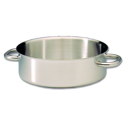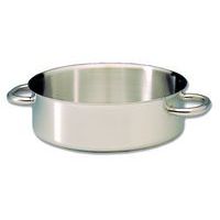 Laag kookpan met handgrepen, ook wel rondeau genoemd Zonder deksel Met een dikke body van roestvrij staal Voorzien van een 'sandwich' bodem bestaand uit verschillende lagen: rvs/aluminium/rvs Gepatenteerde koude omranding, voor nog meer gebruiksgemak