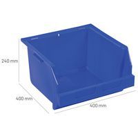 Grote belastingsweerstand. Stapelbak voor orderpicken, stapelbaar met andere bakken van hetzelfde model. Handgreep aan de zijkant voor een gemakkelijk transport. Gemakkelijke identificatie door de dubbele etikettenhouder.