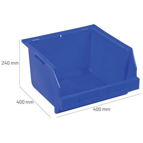 Grote belastingsweerstand. Stapelbak voor orderpicken, stapelbaar met andere bakken van hetzelfde model. Handgreep aan de zijkant voor een gemakkelijk transport. Gemakkelijke identificatie door de dubbele etikettenhouder. Gemaakt in de EU Max. belasting (kg) : 200 Klantgarantie : 3 jaar