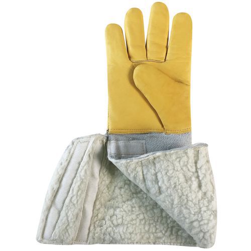 Koudebestendige handschoen, Materiaal: Leer, Handschoen maat: 10, Kleur: Beige, Materiële coating: Geen