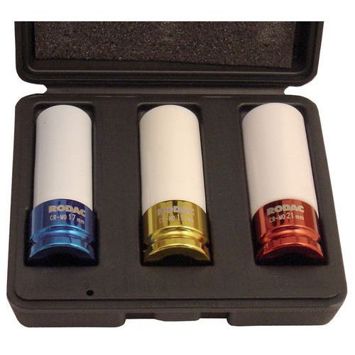 - Deze doppenset is dunwandig zodat elke wielbout eenvoudig bereikt kan worden.