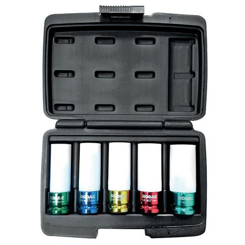 Krachtdoppenset met hoes 85 mm 1/2 inch dunwandig Rodac, Aantal stuks: 5, Type nr.: RA86815