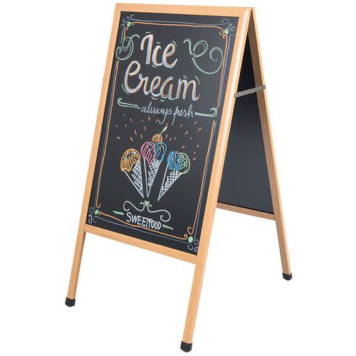 - Veelzijdig stoepbord met zwart oppervlak voor krijt, eenvoudig te reinigen.