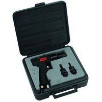 - Geleverd in koffertje met bitten voor klinknagels 4,8 tot 6,4 mm die onderaan de pneumatische vijzel worden opgeborgen.
