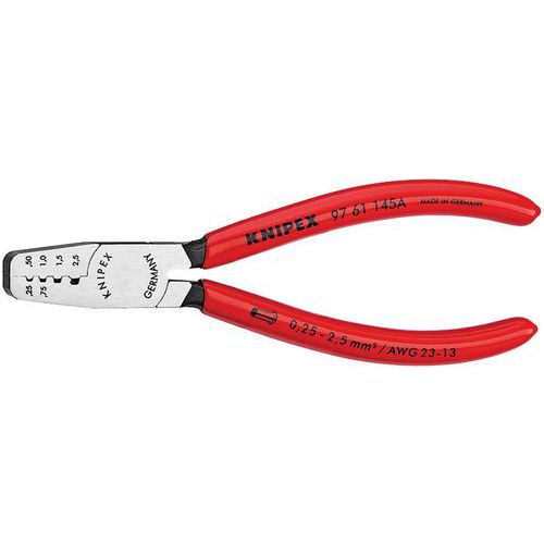 | Productnaam | Krimptang voor adereindhulzen 145 mm_97 61 145 A SB, Type nr.: 97 61 145 A SB, Maat (Afmetingen): 0,25 - 2 |