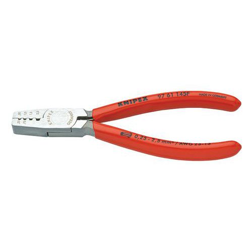 | Productnaam | Krimptang voor adereindhulzen 145 mm_97 61 145 F, Type nr.: 97 61 145 F, Maat (Afmetingen): 0,25 - 2,5 mm² |